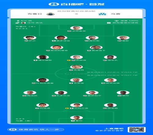 体育播报1月29日宣 北京时间今天4点,欧冠联赛阶段第8轮,布鲁日主场对阵马赛,此役双方首发已经公布。